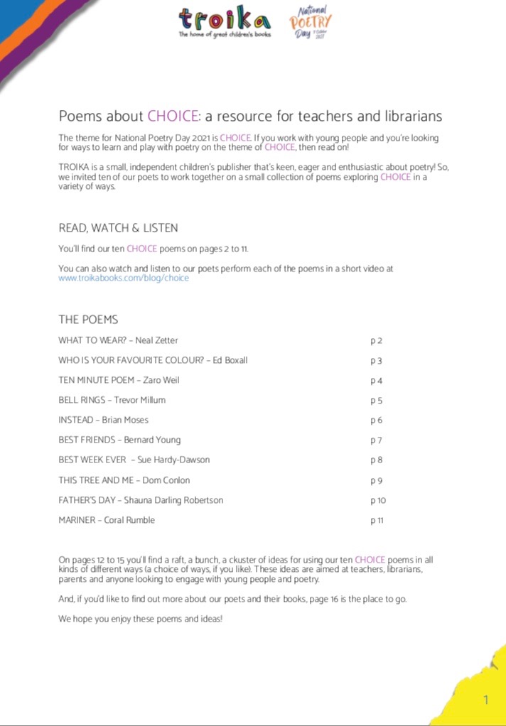 National Poetry Day 2021 is almost here (7 October) and I’m excited to share with you some fun, creative and educational children’s resources that a bunch of poets at publisher Troika have been working on!